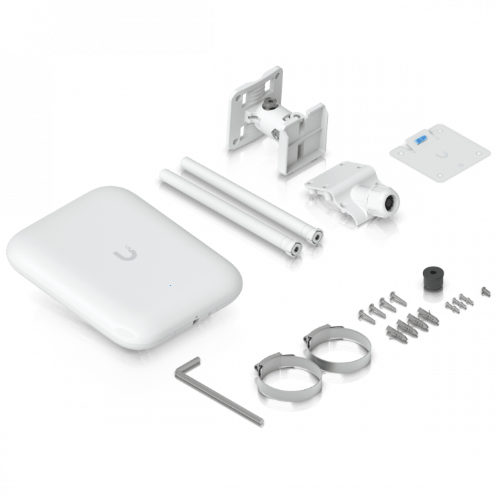 Всепогодная точка доступа Wi-Fi 7 с 6 пространственными потоками, встроенными антеннами с высоким коэффициентом усиления и шарнирным монтажным кронштейном.
