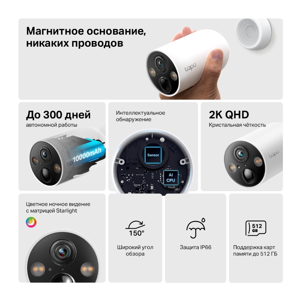 - Цветное ночное видение с датчиком Starlight — повышает безопасность, обеспечивая более яркие, полноцветные изображения и чёткую детализацию даже в условиях слабого освещения благодаря встроенным прожекторам и датчику звёздного света.