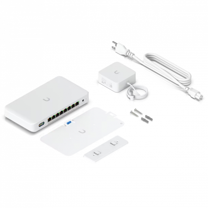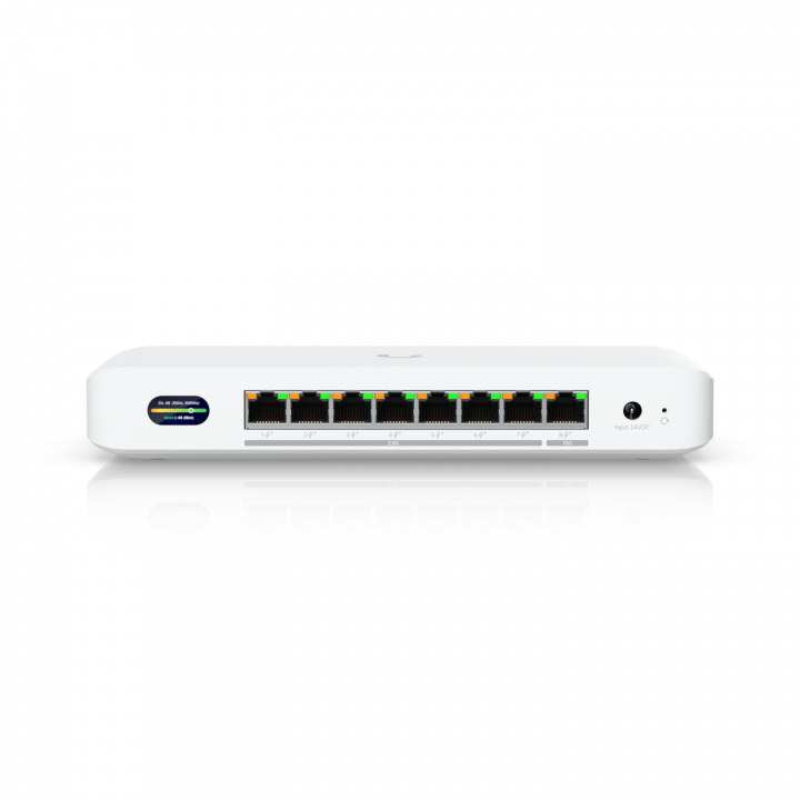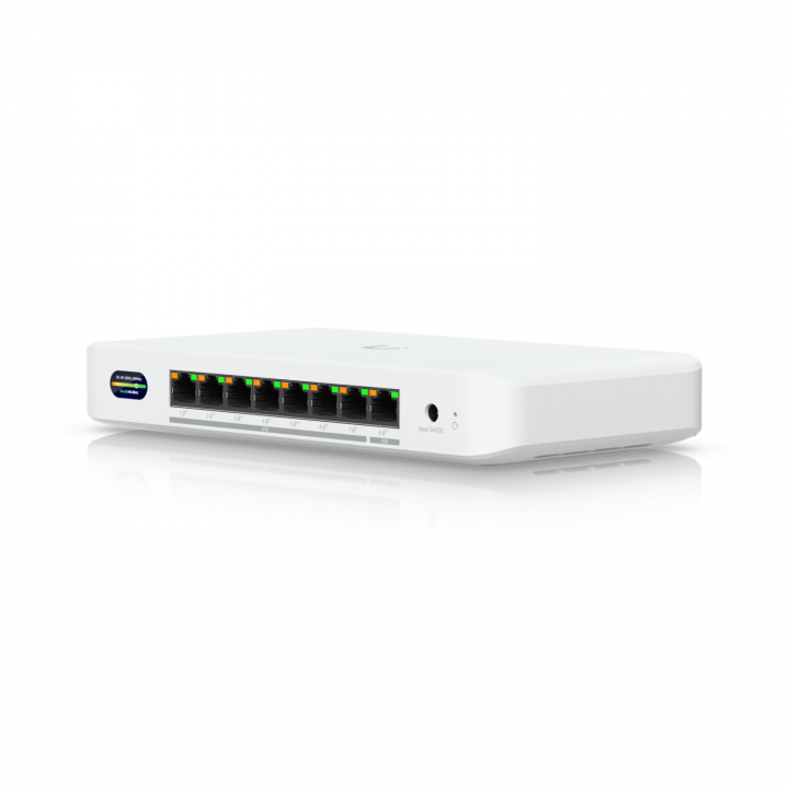 Компактный настольный коммутатор с возможностью установки на стену и раздачей PoE+ мощностью 35 Вт (при использовании идущего в комплекте адаптера 60 Вт) или 185 Вт (при использовании опционального адаптера 210 Вт). Обладает 1 10-гигабитным портом RJ45, 7 2,5-гигабитными портами RJ45 и поддержкой Wi-Fi 7 на частоте 6 ГГц для организации бесперебойной связи с высокой пропускной способностью.