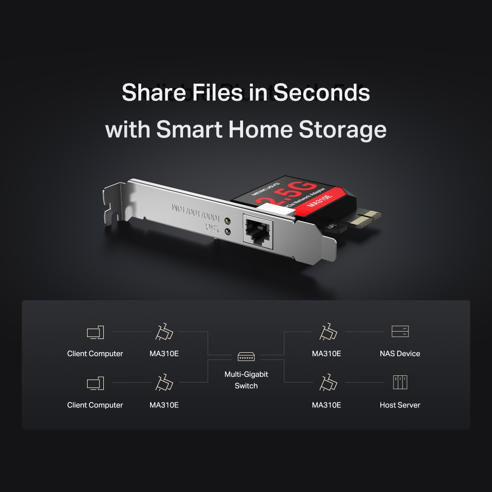 - Сверхбыстрая сеть 2,5 Гбит/с — Благодаря технологии 2,5G Base-T , MA310E обеспечивает высокую скорость до 2,5 Гбит/с , что в 2,5 раза быстрее, чем у обычных гигабитных адаптеров, гарантируя бесперебойную передачу данных как при доступе в Интернет, так и при локальной передаче данных.