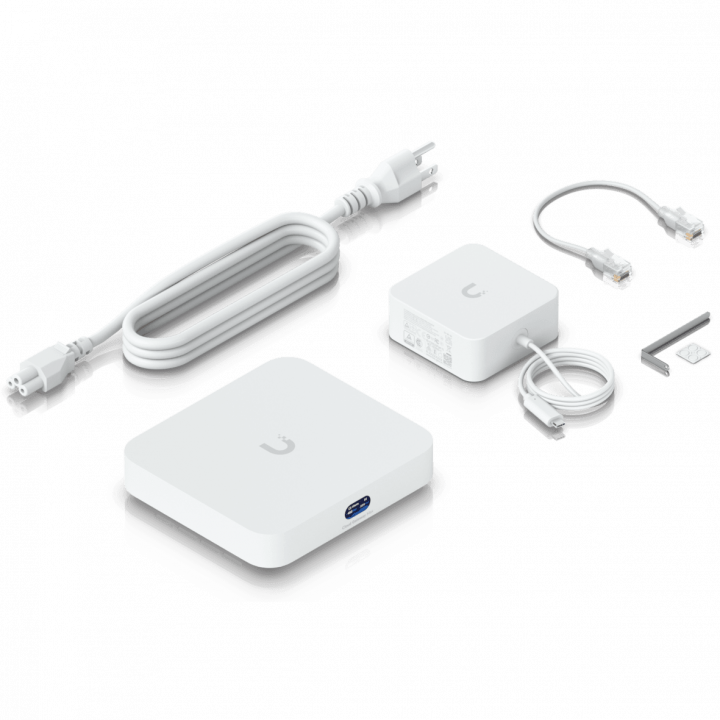 Компактный маршрутизатор, поддерживающий более 30 устройств UniFi и более 300 клиентских устройств. Скорость IPS-маршрутизации достигает 1,5 Гбит/с, имеется функция балансировки нагрузки (multi-WAN). Управляется при помощи мобильного приложения UniFi для iOS и Android (версии 10.17.2 или новее).